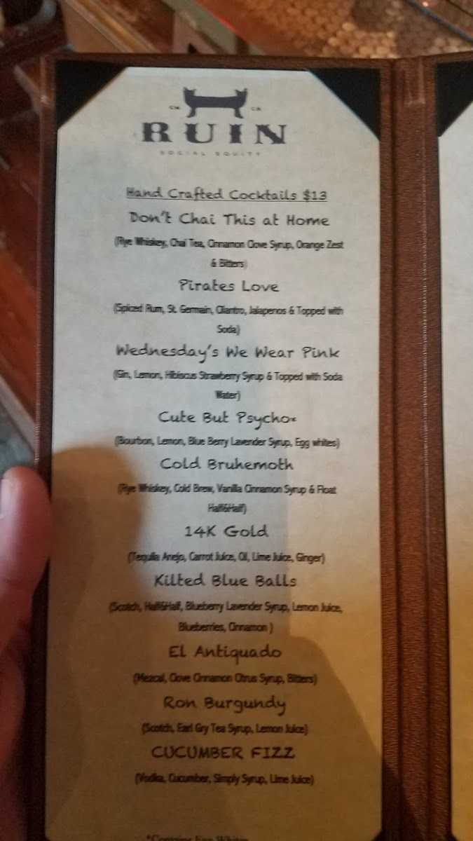 Ruin Bar's menu is a dynamic blend of hand-crafted cocktails and fine wines. Highlights include: